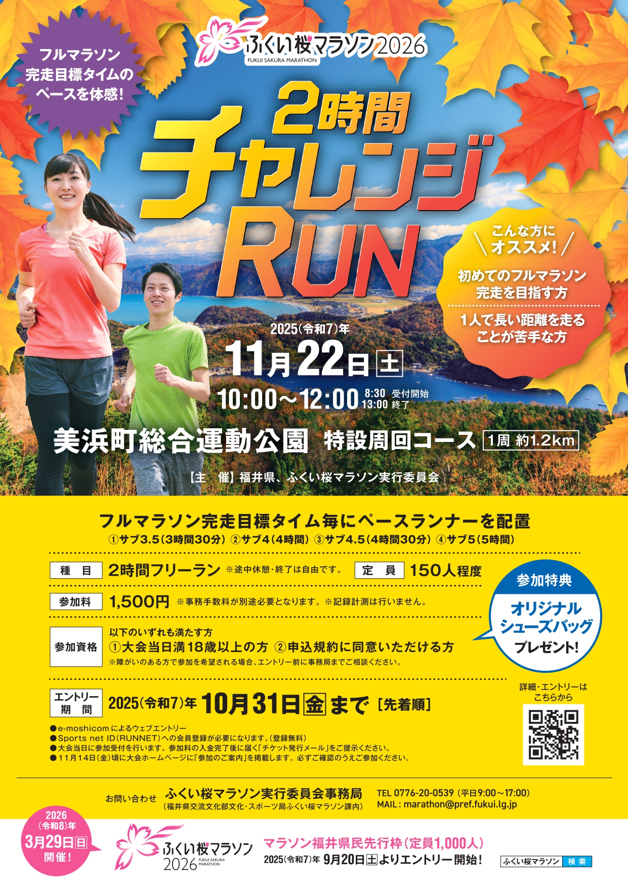 「ふくい桜マラソン 2026」に向けたランニングイベント「2時間チャレンジRUN」のエントリー期間を延長しました!