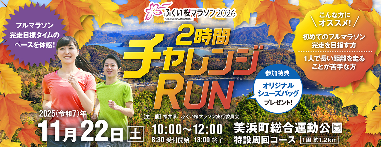 11/22(土)開催「ふくい桜マラソン 2026」2時間チャレンジRUNの「参加のご案内」を掲載しました。